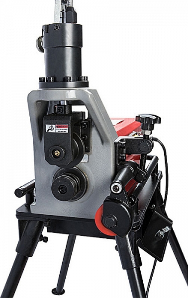 Электрический гидравлический желобонакатчик Rotorica Roller GM12S (Роторика Роллер ГМ12С) с модернизированным ручным гидравлическим насосом – грувлочный желобонакатный станок с модернизированной ручной гидравлической подачей накатывающего ролика для накатки канавок (желобков) на углеродистых стальных трубах из углеродистой стали Ø 1" – 8" (25 – 200 мм) sch. 10/40 и Ø 10" – 12" (250 – 300 мм) sch. 10/20, толщиной стенки 2,8 – 8 мм, нержавеющих стальных трубах из нержавеющей стали Ø 1" – 8" (25 – 200 мм) sch. 10/20, толщиной стенки до 6 мм при монтаже водопроводных, отопительных, пожарных и промышленных трубопроводов без применения сварки. Отличное решение для выполнения больших объемов работ на стройплощадке или в цехе производства.