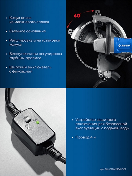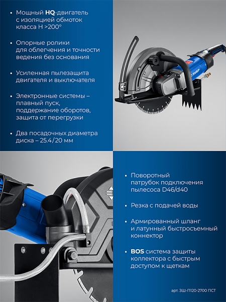 Преимущества электрического резчика по бетону Зубр Профессионал ЗШ-П120-2700 ПСТ: