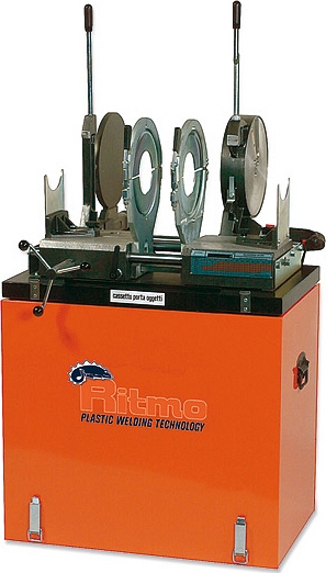 Профессиональная механическая стыковая сварочная машина Ritmo VR 250 (Ритмо ВР 250) – сварочный аппарат с механическим приводом для ручной стыковой сварки водопроводных, канализационных и сточных трубопроводов из пластиковых (из полиэтилена низкого давления или высокой плотности, полипропилена, полибутена или полибутилена, поливинилиденфторида) труб и различных фитингов (колен, тройников, Y-образных и т.д.) Ø 75 – 250 мм.