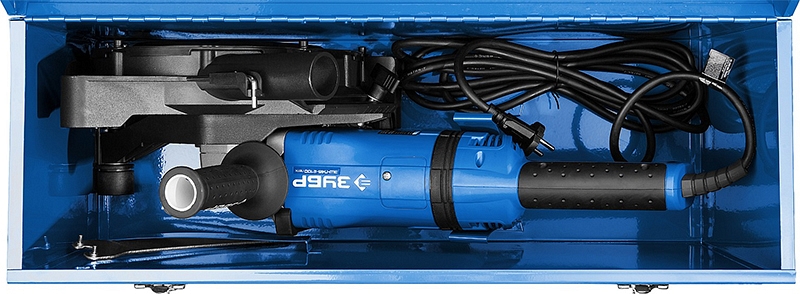 - Эффективное пылеудаление благодаря возможности подключения пылесоса (Ø патрубка 35 мм, совместимо с пылесосами ЗУБР серии ПУ)