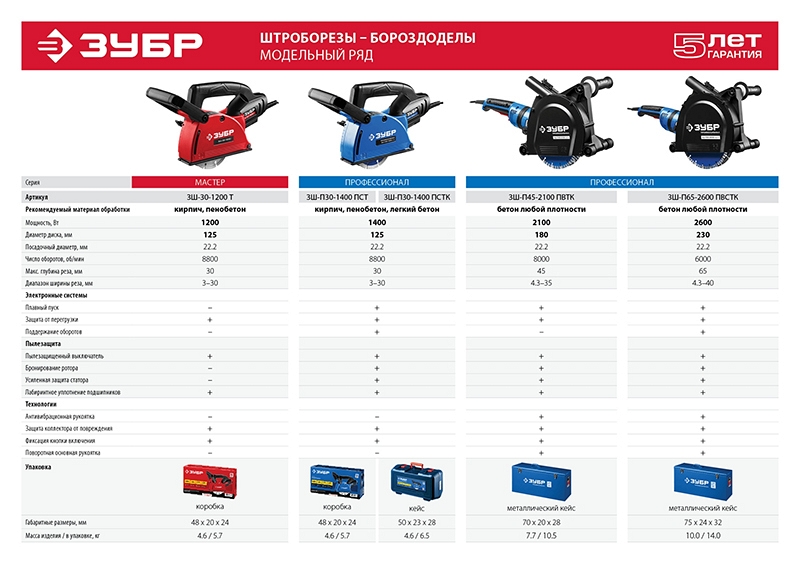 – На электроинструменты и бензотехнику ЗУБР действует расширенная 5-летняя гарантия