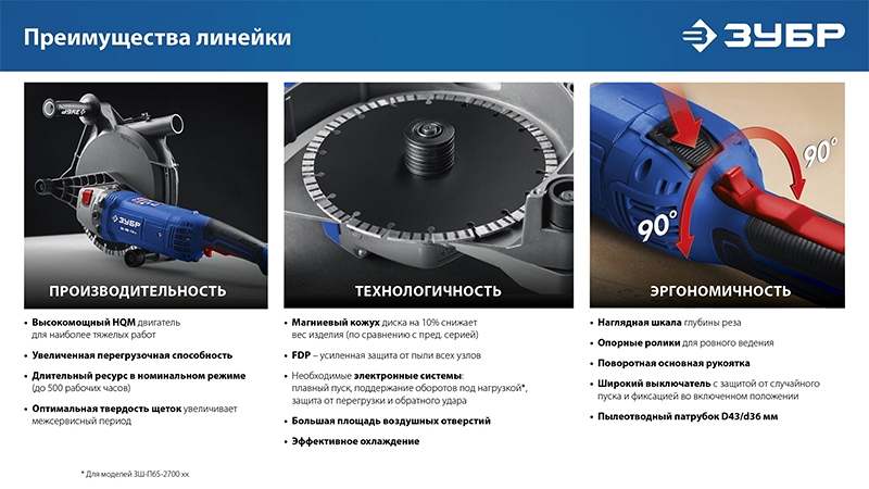 Преимущества штробореза Зубр Профессионал ЗШ-П65-2700 ПСТ: